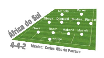 Destaque no meio-campo, Steven Pienaar é o grande trunfo da África do Sul. Desde a transferência para o Everton, da Inglaterra, Pienaar amadureceu. Outros atletas habilidosos são os alas Siboniso Gaxa e Tsepho Masilela.