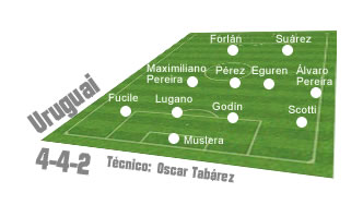 Entre os destaques da equipe do técnico Oscar Tabárez está o capitão Diego Lugano, ex-São Paulo e atualmente no Fenerbahce, da Turquia. Além dele, o atacante Diego Forlán é a principal esperança de gols.